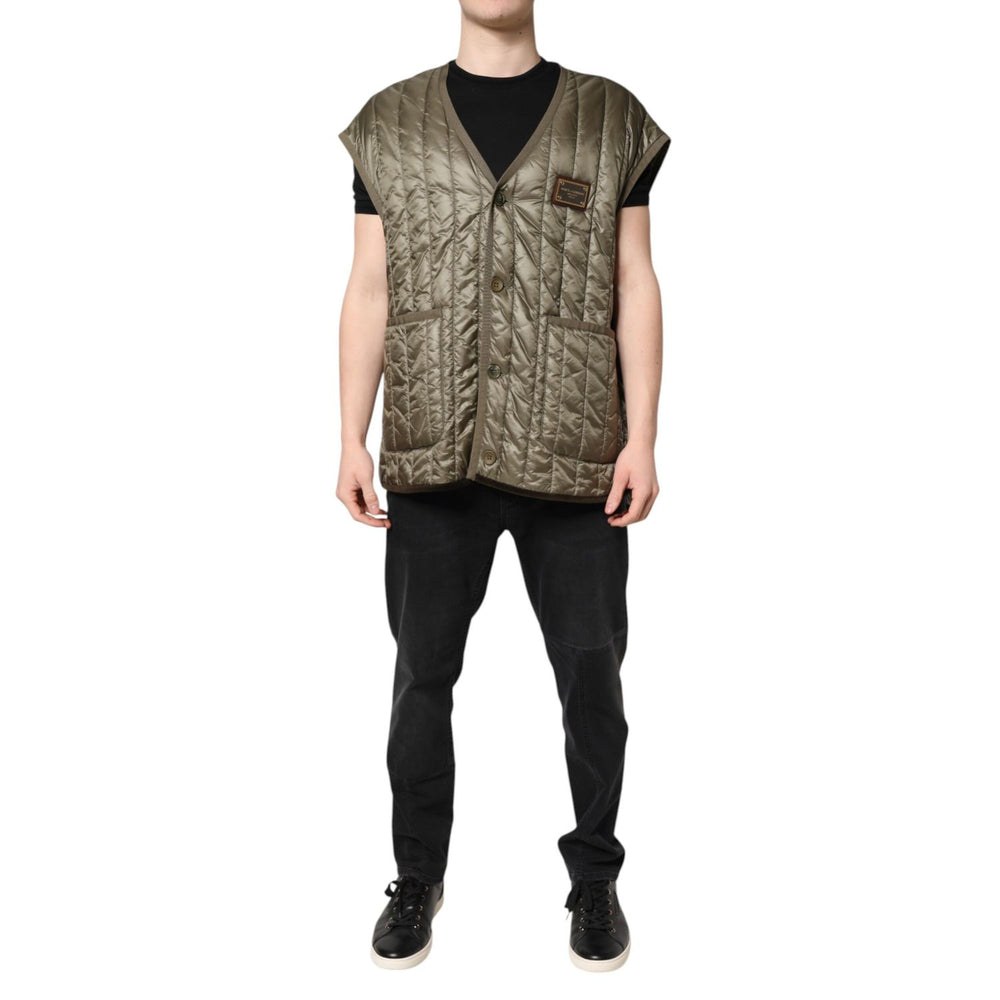 Dolce & Gabbana Brown Logo Plaque Quilted Vest Jacket