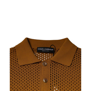 Dolce & Gabbana Brown Perforated Collared Short Sleeves T-shirt