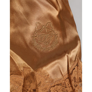 Dolce & Gabbana Brown Silk Satin Floral Lace Shorts Underwear