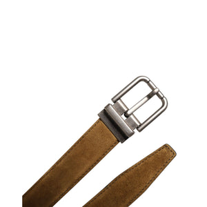 Dolce & Gabbana Brown Velvet Leather Logo Buckle Belt