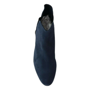 Dolce & Gabbana Blue Suede Embellished Studded Boots Shoes