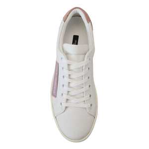 Dolce & Gabbana White Pink Leather Low Top Sneakers Shoes