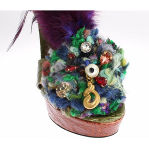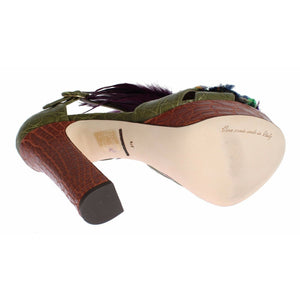 Dolce & Gabbana Green Leather Crystal Platform Sandal Shoes