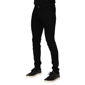 Dolce & Gabbana Dark Blue Cotton Logo Plaque GOLD Denim Jeans