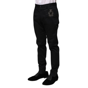 Dolce & Gabbana Dark Blue Logo Cotton Dress Pants