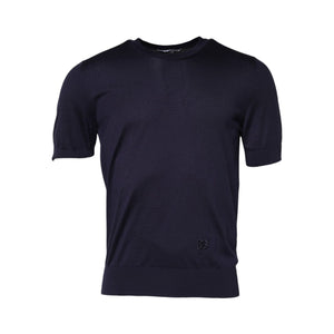 Dolce & Gabbana Dark Blue Silk Crew Neck Short Sleeves T-shirt