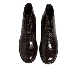 • Dolce & Gabbana Dark Brown Leather Lace Up Short Boots Shoes