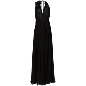 floral-detail pleated silk dress from DOLCE & GABBANA featuring black, silk, fully pleated, floral appliqué, V-neck, halterneck tie fastening, A-line skirt and floor-length. Silk long dress Size and Fit - This piece fits true to size. We recommend you get your regular size. Model is 1,75m / 5ft 8in wearing size 40 (IT)