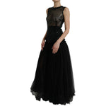 Dolce & Gabbana Black Sequined Sleeveless Mesh Layered Gown Dress
