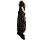 Dolce & Gabbana Black Pink Silk Applique Shift Dress