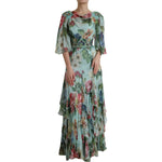 Dolce & Gabbana Blue Floral Print Tiered Long Maxi Dress