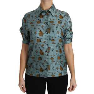 Dolce & Gabbana Multicolor Musical Instruments Silk Short sleeve Shirt