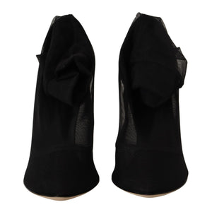 Dolce & Gabbana Black Stretch Tulle Stretch Boots Shoes