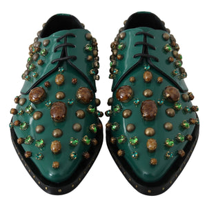Dolce & Gabbana Green Leather Crystal Dress Broque Shoes