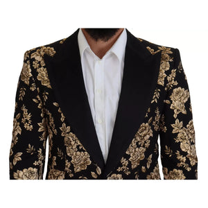 Dolce & Gabbana Gold Black Floral Embroidered Jacket Blazer