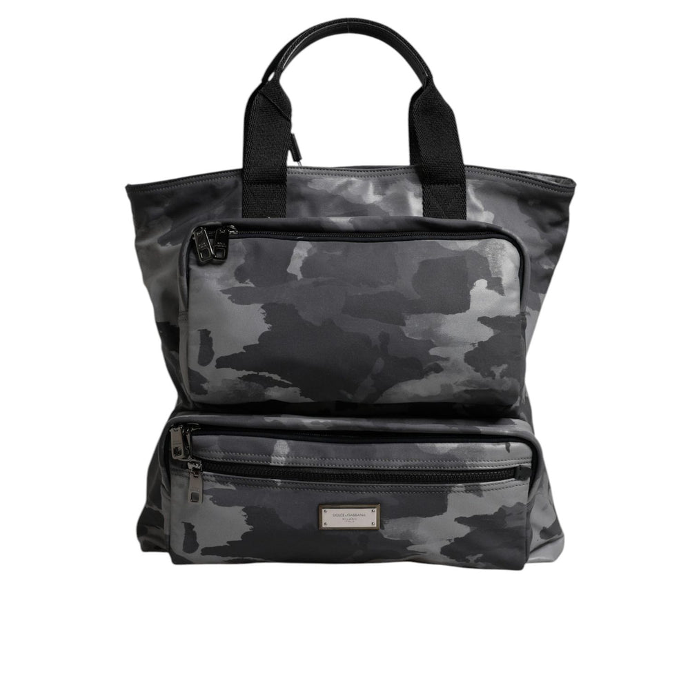 Gorgeous brand new, 100% Authentic Dolce & Gabbana tote bag featuring a modern gray camouflage pattern. This bag includes multiple zippered compartments for secure storage, dual carrying options with sturdy handles and long shoulder straps, and a durable water-resistant material.