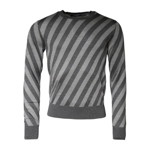Dolce & Gabbana Gray Stripes Long Sleeve Round Neck Pullover Sweater