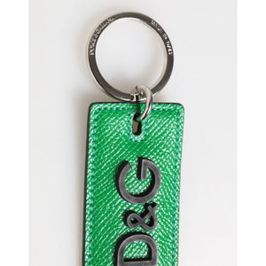 Dolce & Gabbana Green Leather Logo Metal Ring Keychain Holder Men Keyring