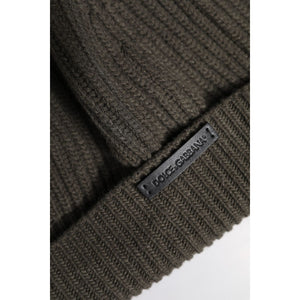 Dolce & Gabbana Green Wool DG Plaque Knitted Winter Beanie Hat