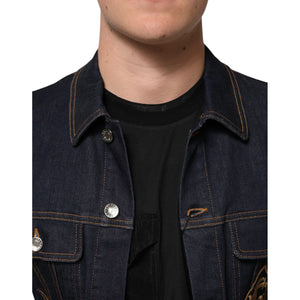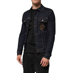 Dolce & Gabbana Indigo Blue Denim Slim Fit Logo Patch Jacket