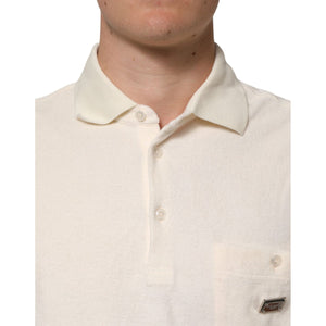 Dolce & Gabbana Ivory Cotton Terry Logo Pocket Polo T-shirt