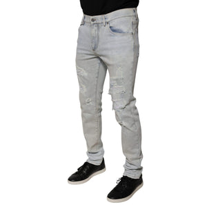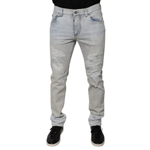 Dolce & Gabbana Light Blue Cotton Blend Tattered Skinny Denim Jeans