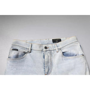• Dolce & Gabbana Light Blue Cotton Blend Tattered Skinny Denim Jeans