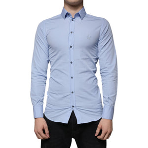 Dolce & Gabbana Light Blue Cotton Slim Fit GOLD Dress Shirt
