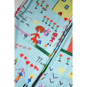 • Dolce & Gabbana Light Blue Drawing Mid Waist Wide Leg Pants