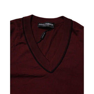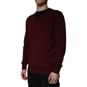 Dolce & Gabbana Maroon Cashmere V-neck Men Pullover Sweater