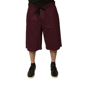 • Dolce & Gabbana Maroon Cotton Mid Waist Bermuda Shorts