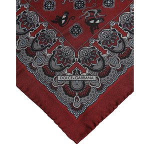 Dolce & Gabbana Maroon Monkey Print Silk Square Foulard Scarf