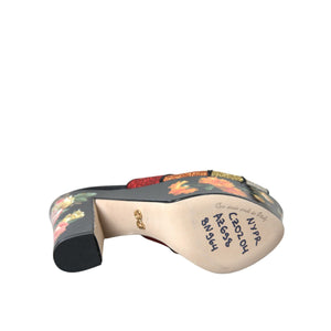 Dolce & Gabbana Multicolor Floral Crystal Platform Sandals Shoes