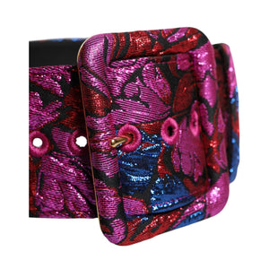 Dolce & Gabbana Multicolor Floral Jacquard Lurex Wide Waist Buckle Belt