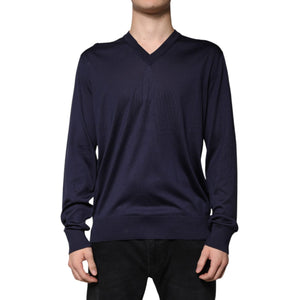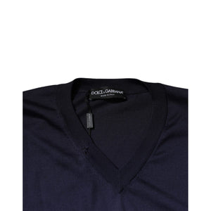 Dolce & Gabbana Navy Blue Silk V-neck Pullover Sweater