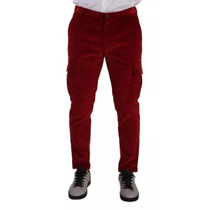 Dolce & Gabbana Red Corduroy Cotton Cargo Skinny Pants