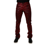 Dolce & Gabbana Red Leopard Cotton Slim Fit Denim Jeans