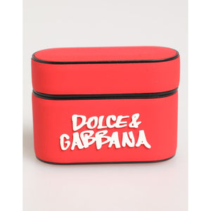 Dolce & Gabbana Red PVC DG Logo Embossed Men Flip Holder Airpods Case with embossed logo design, durable and stylish luxury accessory.