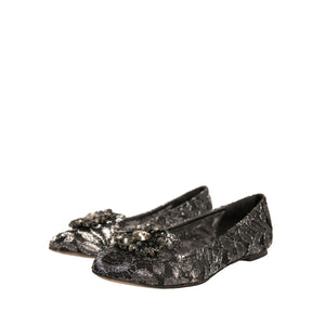 Dolce & Gabbana Silver Crystal Loafer Lace Ballet Flats Shoes