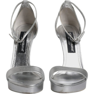 Dolce & Gabbana Silver Leather Platform Keira Sandals Shoes