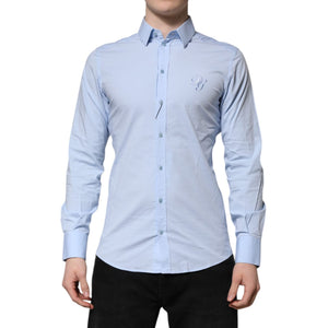 Dolce & Gabbana Sky Blue Cotton GOLD Long Sleeves Dress Shirt