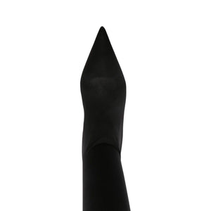 black stretch-jersey pointed toe thigh-length branded leather insole flat leather sole pull-on style Stretch jersey over-the-knee boots Size and Fit - Heel 0,4 in / 1 cm