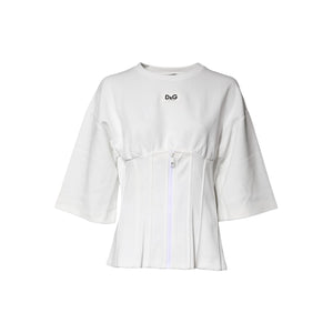 Dolce & Gabbana White Cotton Blend 3/4 Sleeves Blouse Top