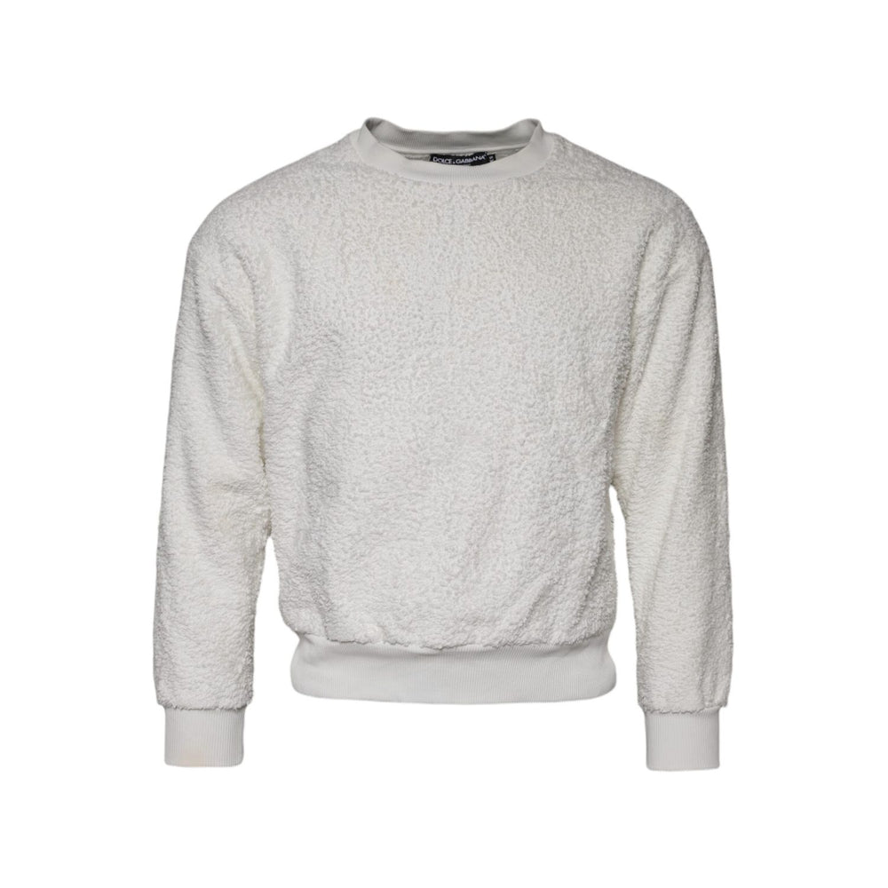 Dolce & Gabbana White Cotton Fleece Crew Neck Sweater
