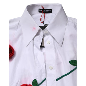 Dolce & Gabbana White Cotton Floral Appliques Dress Shirt Top