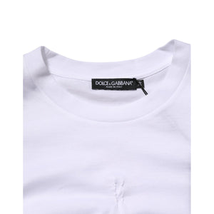 Dolce & Gabbana White Cotton Logo Patch Crew Neck Men T-shirt