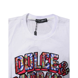Dolce & Gabbana White Cotton Logo Print Round Neck T-shirt