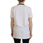Dolce & Gabbana White Cotton Printed Ascot Collared T-shirt