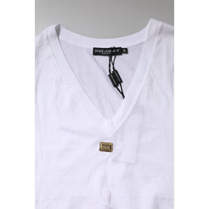 Dolce & Gabbana White Cotton Short Sleeve V-Neck Top T-shirt