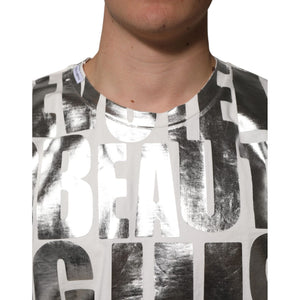 Dolce & Gabbana White Cotton Silver Metallic Slogan Print T-shirt